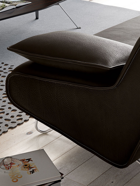 Каркас доступен в отделке сатинированный никель или матовый чёрный, а обивка может быть выполнена как в едином тоне, так и в комбинации материалов. Благодаря мягкой посадке и продуманной эргономике Gismo становится стильным центром современной гостиной.