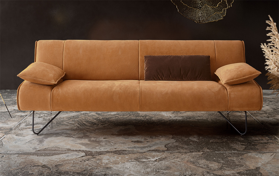 Gismo сочетает плавные линии и уютное сидение, создавая образ дивана, который выглядит лёгким и современным. Несмотря на компактные размеры, он излучает ощущение воздушности благодаря тонкому металлическому каркасу.