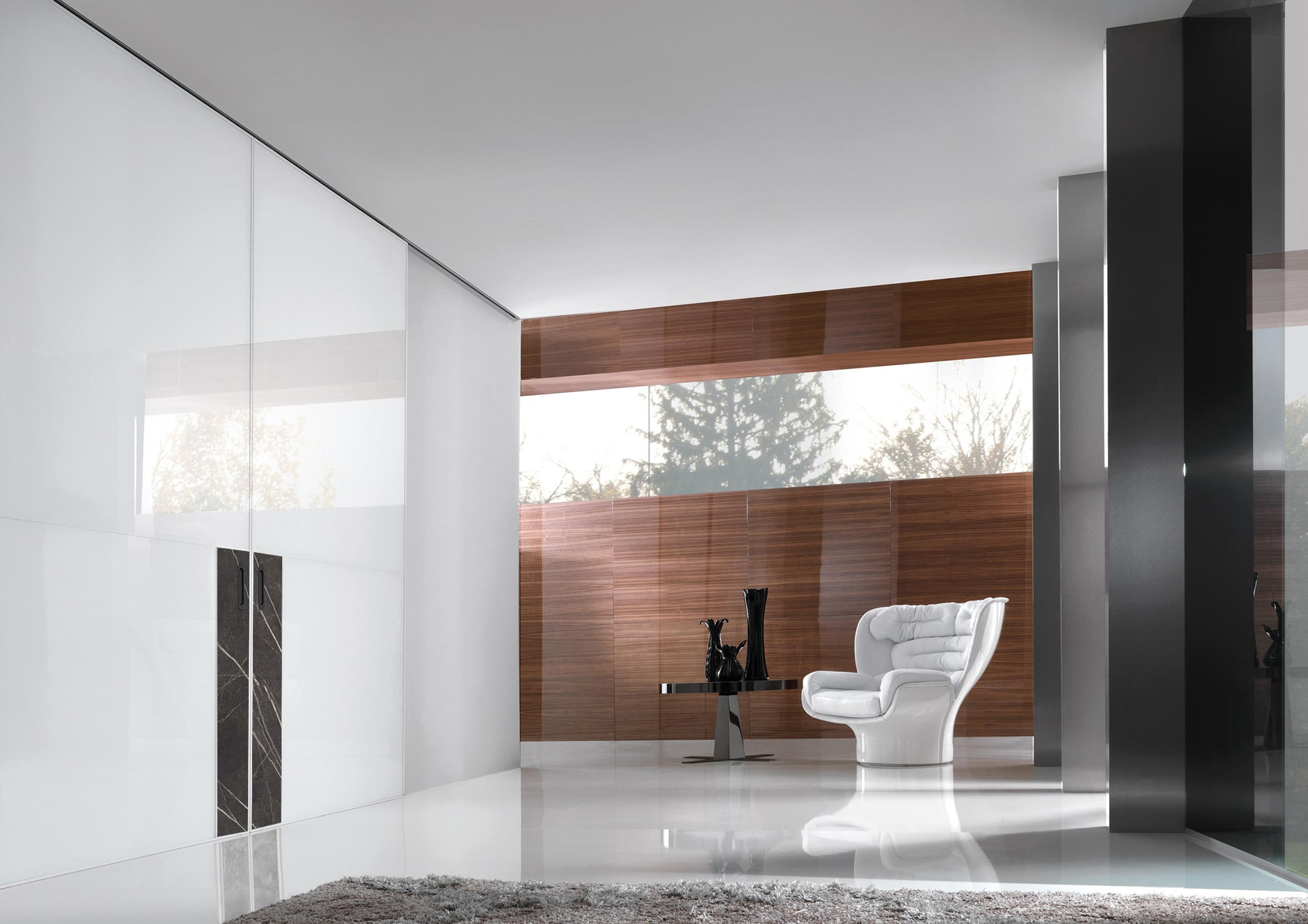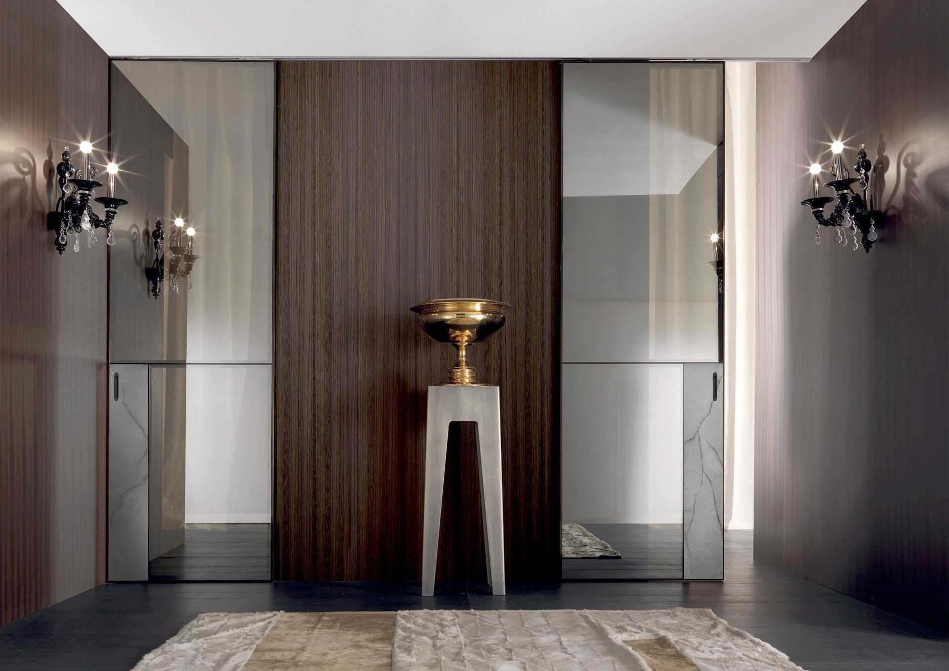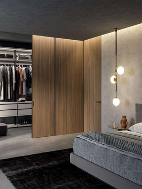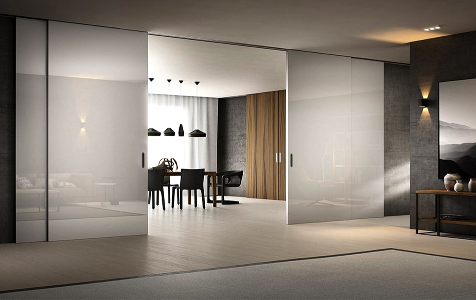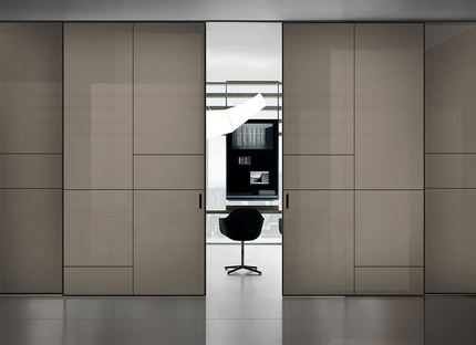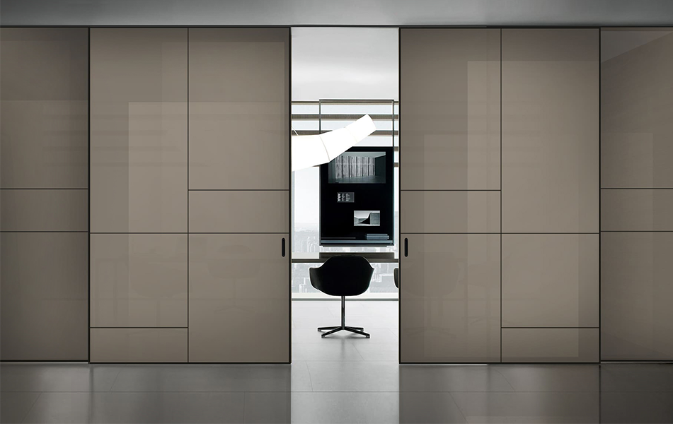 Spazio предлагает чрезвычайно высокий потолок возможности — до 5000 мм, европейская фурнитура, доводчики в комплекте и мягкое почти бесшумное движение делают эту систему идеальной для стильного и функционального интерьера.