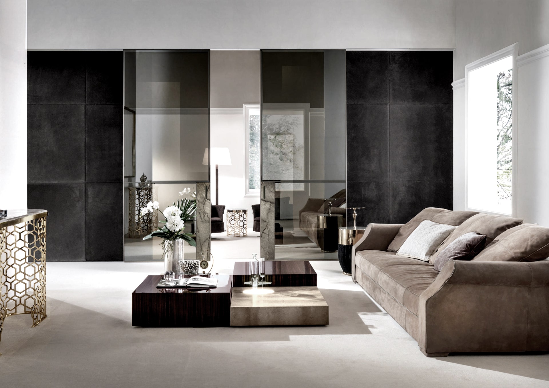 Выбирайте стекло, профиль и отделку из множества вариантов, чтобы Spazio органично вписалась в ваше пространство. Цвет рам и стекла легко адаптируются под стиль вашего дома или офиса.