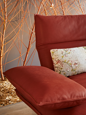 Элегантные металлические опоры в никеле или матовом чёрном исполнении подчёркивают современный облик дивана. Возможность выбора цвета строчки — тон в тон или контраст — позволяет придать модели уникальность и завершённый вид.