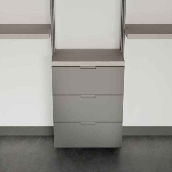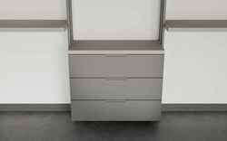 Функциональная тумба в современном дизайне с тремя вместительными ящиками. Подходит для аккуратного хранения одежды, аксессуаров или белья, помогая поддерживать порядок в гардеробной зоне.