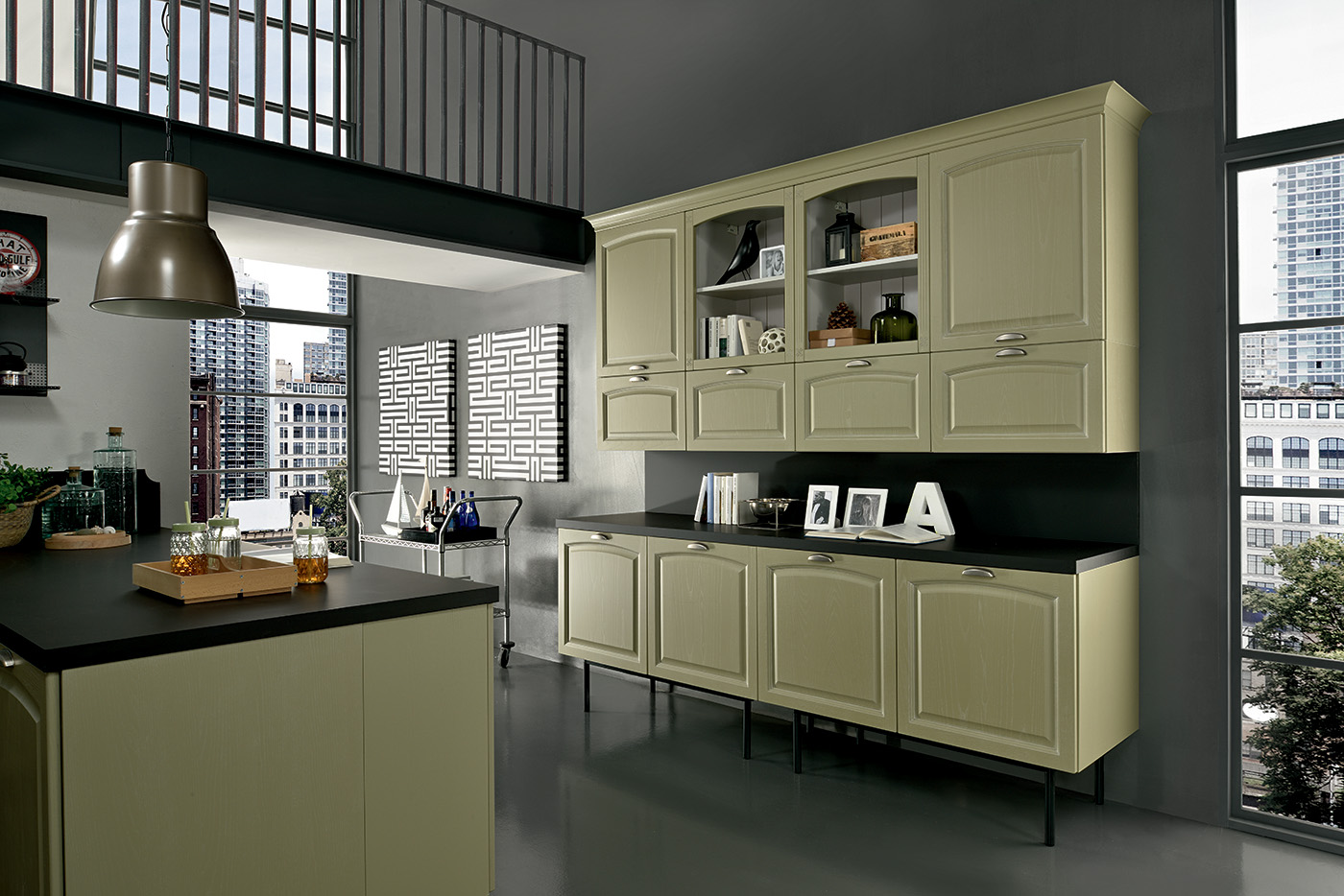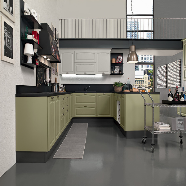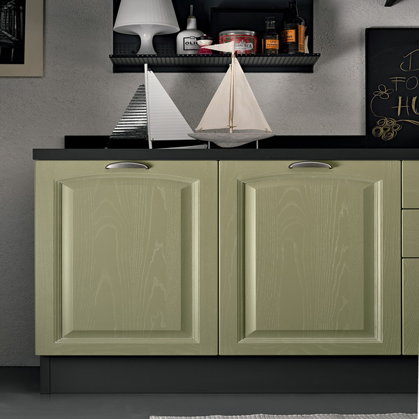 Комбинация оттенков Verde Naturale и Verde Dorian — это диалог между теплом природных тонов и глубиной утончённого зелёного. Такой ансамбль создаёт атмосферу спокойствия, баланса и свежести. Лаконичные фасады, продуманная эргономика и вариативность модулей делают эту кухню функциональной и эстетически безупречной.