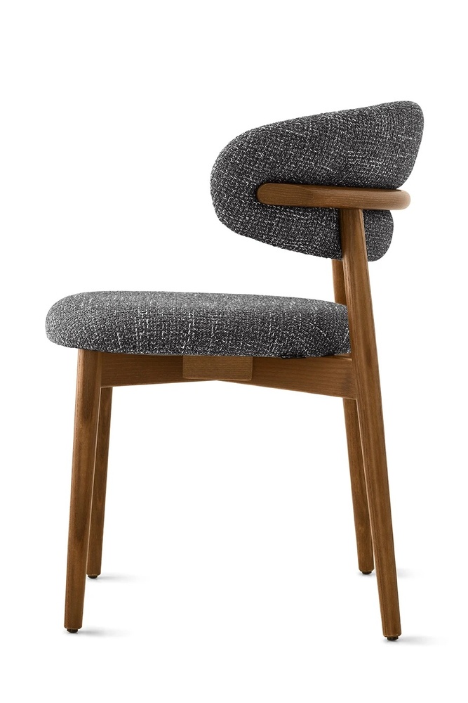Деревянное основание из ясеня выглядит тонким и лёгким, но при этом остаётся устойчивым. Вниманию к деталям здесь уделено особое внимание: край деревянной рамки спинки аккуратно «срезан» и плавно заострён — это фирменный, почти ювелирный акцент коллекции OLEANDRO.