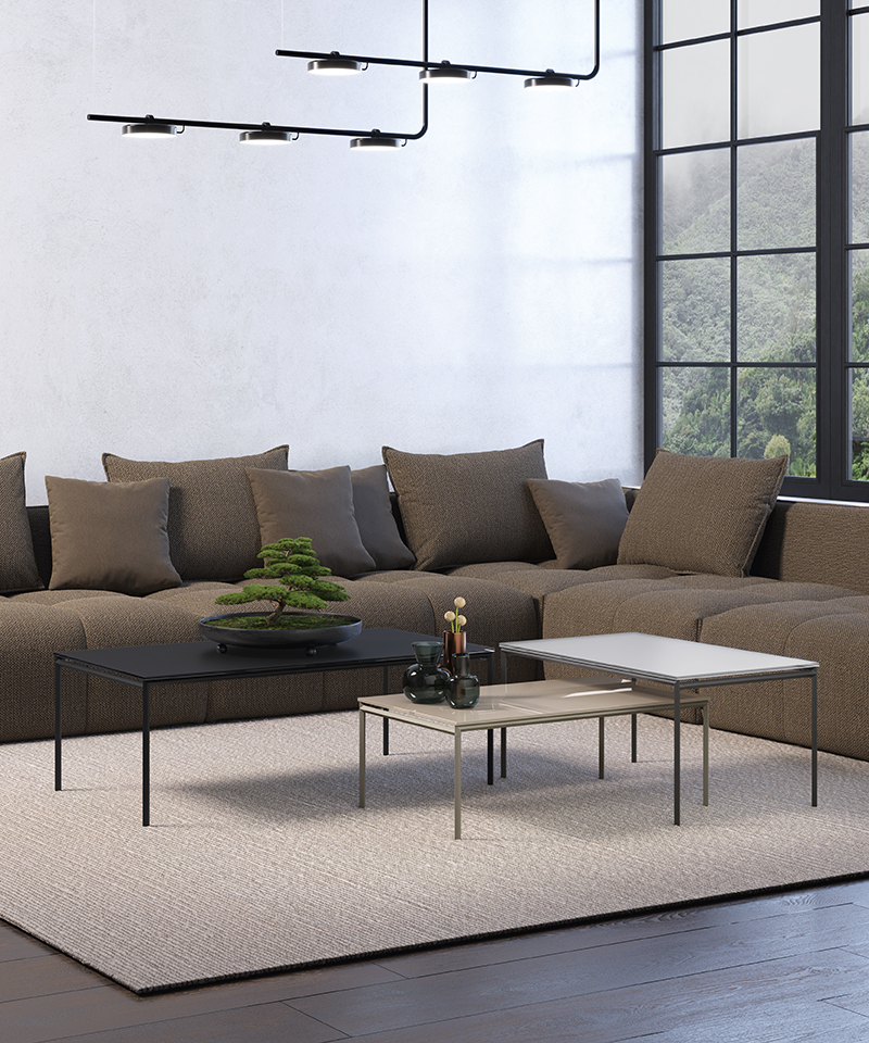 Столешница доступна в вариантах с матовым лаковым покрытием или в отделке натуральным шпоном, что позволяет адаптировать столик под разные стилистические сценарии — от сканди до современной классики.