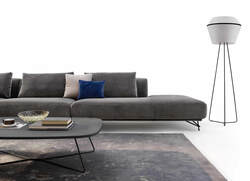 Дизайн Lennox основан на смелой асимметрии — форма и пропорции дивана создают выразительный визуальный эффект и предлагают новый уровень комфорта. Металлические «сани»-ножки чёрного цвета подчеркивают его универсальность, делая модель подходящей для самых разных интерьерных стилей в качестве акцентного решения.
