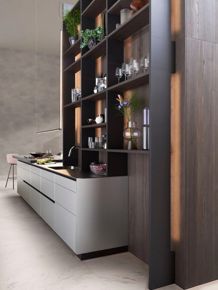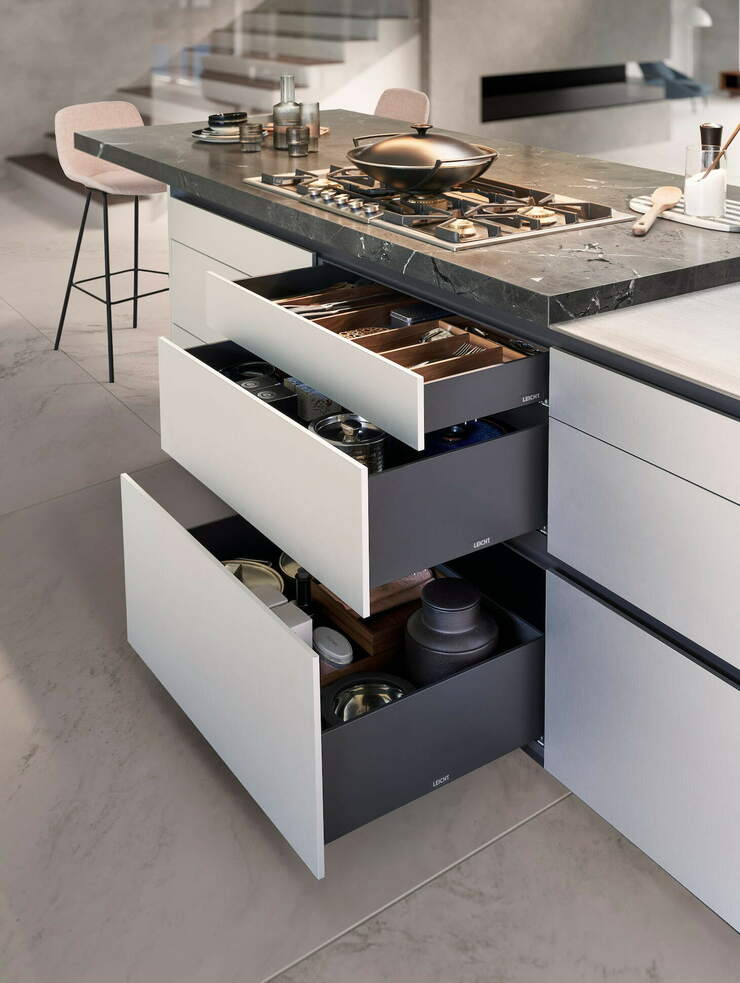 С выпуском Contino Ξ12 коллекция LEICHT пополнилась элегантным фасадом без ручек толщиной всего 12 мм. Чистота линий и минимализм материалов делают его воплощением утончённости и современного стиля в интерьере кухни.