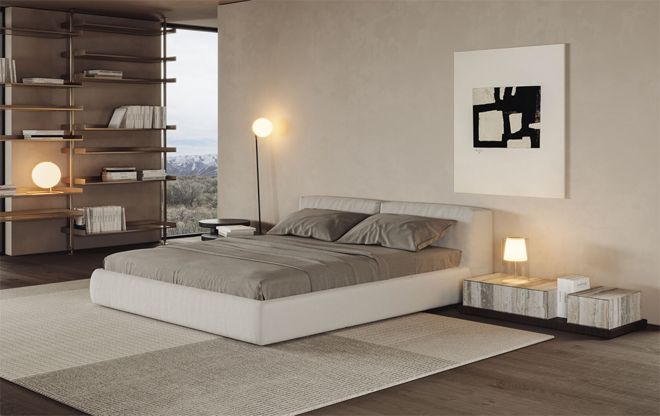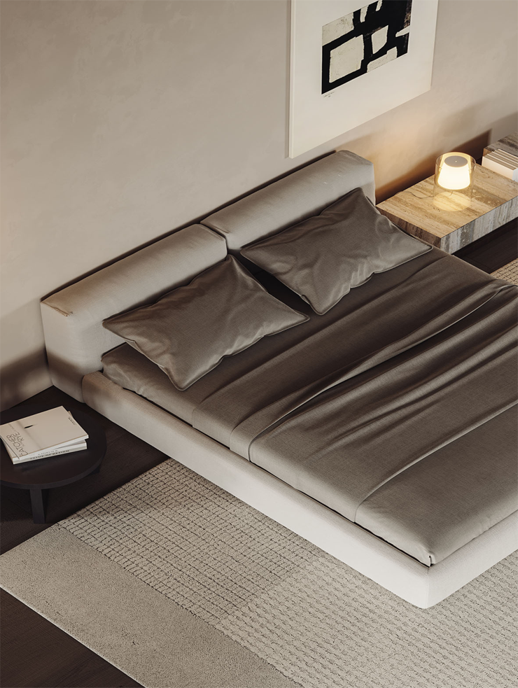 Модель BOCA LOMO создана для тех, кто ценит высоту и утончённый дизайн. Высокие царги и изголовье формируют выразительный силуэт, а мягко скруглённые углы придают ощущение защищённости и уюта.
