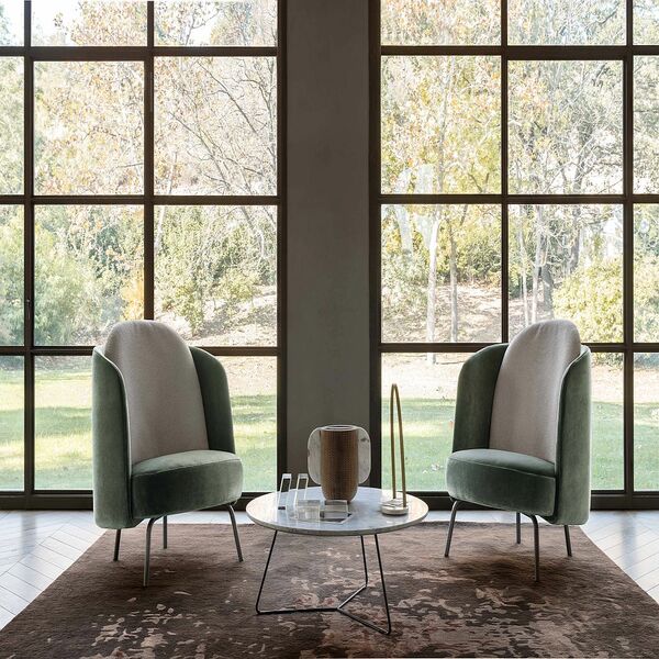 Эта модель сочетает плавные линии и утончённые акценты, создавая гармонию элегантности и мягкого уюта. Кресло доступно в двух версиях — с высокой или низкой спинкой, что позволяет выбрать оптимальный вариант для вашего интерьера. Независимо от исполнения, Lucia сохраняет сдержанную привлекательность и становится акцентом, который добавляет пространству тепла и изысканности.