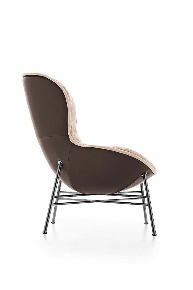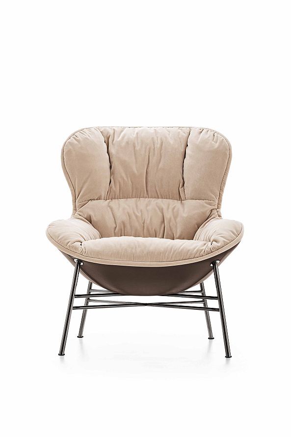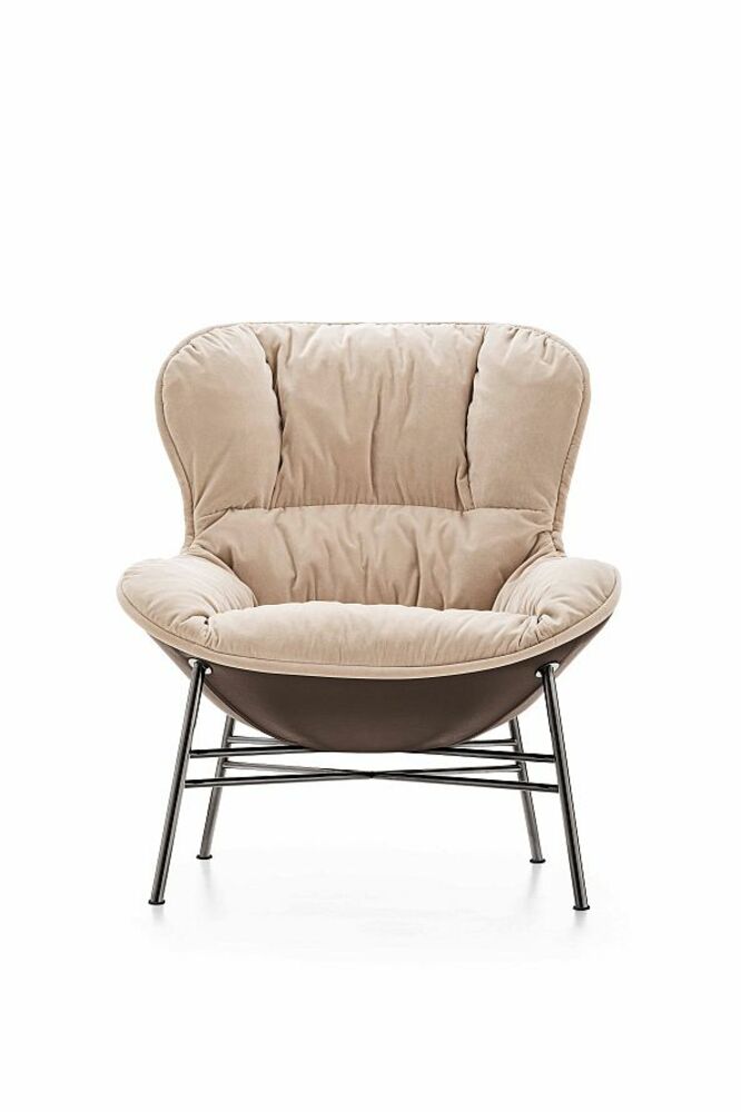 Кресло Softy впечатляет с первого взгляда: металлическое основание с кожаной отделкой подчёркивает винтажный характер, а пышная мягкая посадка создаёт ощущение уюта и комфорта. Контраст материалов и фактур делает модель выразительной и элегантной, а её универсальность позволяет гармонично вписать кресло в самые разные пространства — от лаунж-зон и уютных гостиных до стильных холлов и отелей.