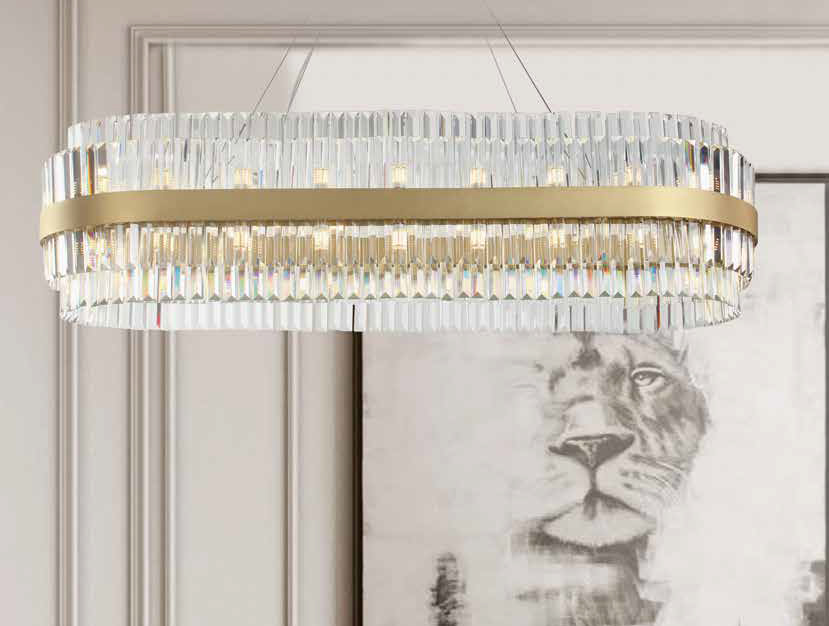 Люстра 10242/120 oval — это эффектный подвесной светильник, который превращает освещение в часть интерьерного декора. Овальная форма, прозрачный хрусталь и качественная латунная арматура создают визуально лёгкий, но впечатляющий световой ансамбль.