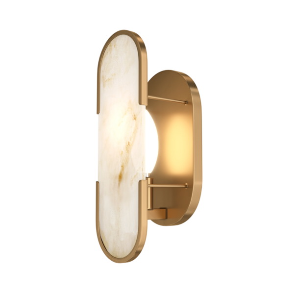 белый абажур из алебастра, благодаря чему свет выглядит мягким и статусным, а само бра легко вписывается в современные интерьеры с нотами неоклассики.