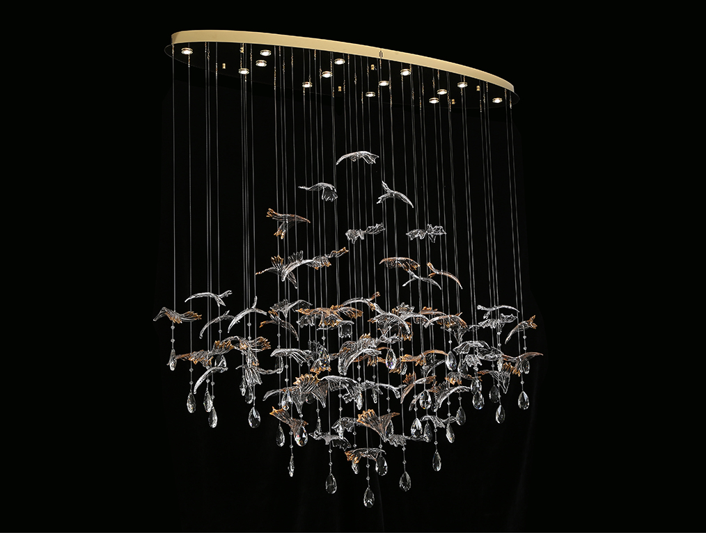золотого и прозрачного стекла, благодаря чему светильник выглядит лёгким и очень нарядным.