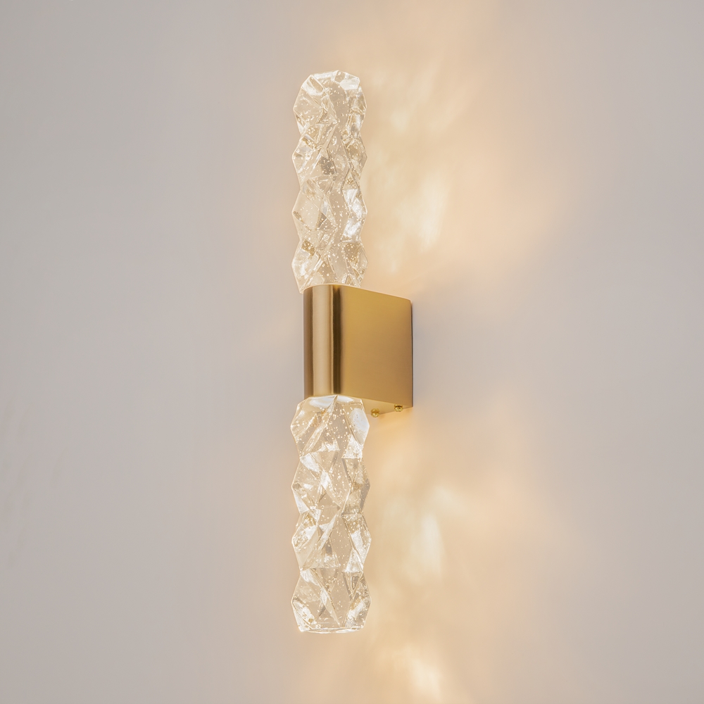 рельефный хрустальный плафон с зигзагообразным орнаментом, который красиво преломляет свет и создаёт на стенах выразительные геометрические световые узоры.