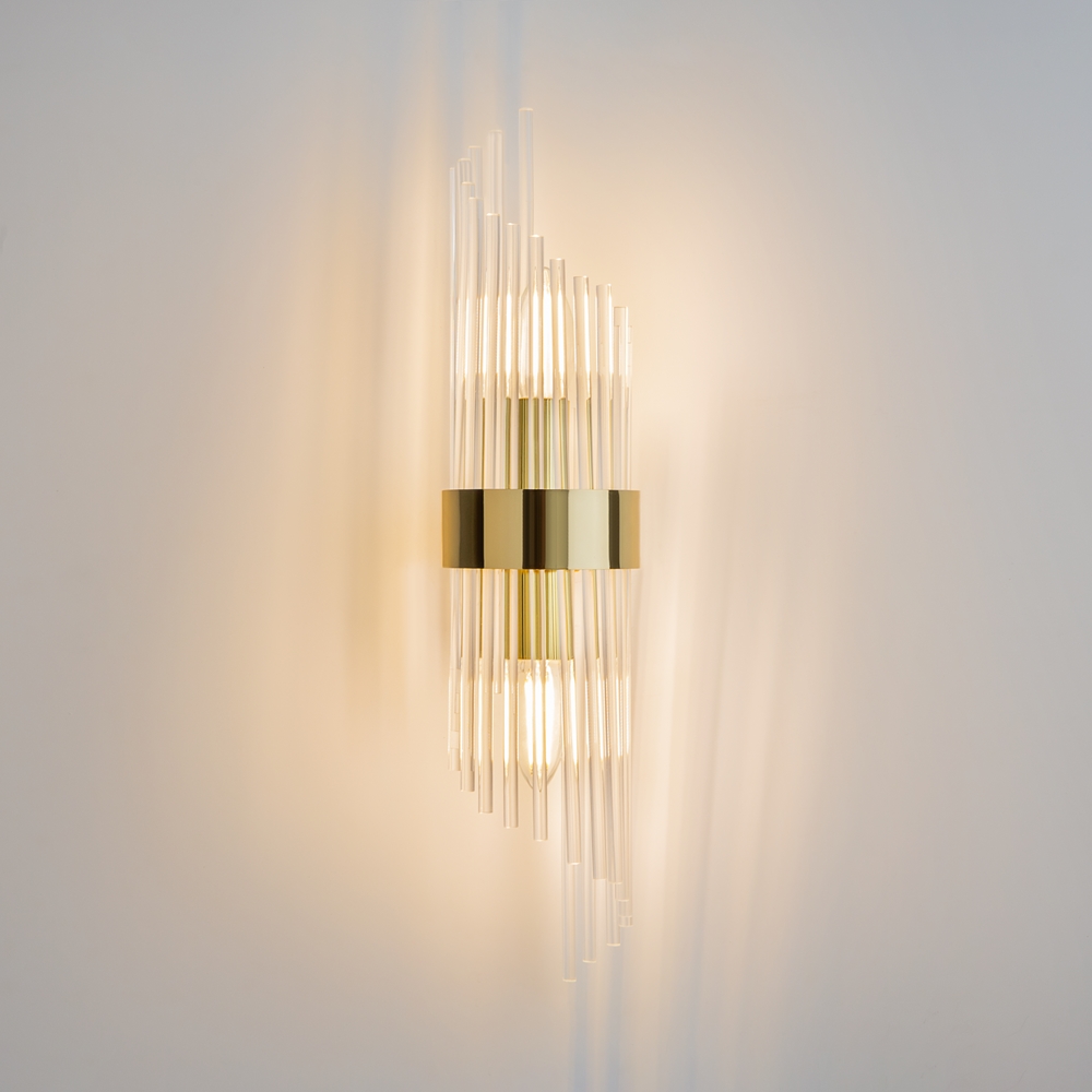 Светильник рассчитан на 2 лампы с цоколем E14 (лампы не входят в комплект), поэтому вы можете подобрать нужную яркость и тип света под интерьер — от тёплого уютного до более нейтрального. Компактная геометрия и вытянутый формат делают бра удачным выбором для гостиной, спальни, коридора или зоны у зеркала.