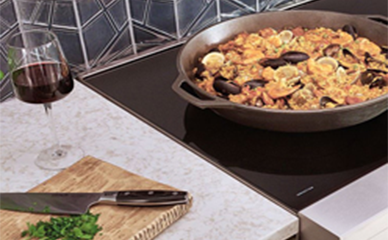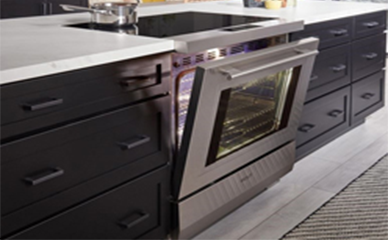 Кухонный блок ICBIR36550 сочетает индукционную варочную панель и электрический духовой шкаф в одном корпусе, упрощая планировку и экономя место. Sub-Zero & Wolf+1