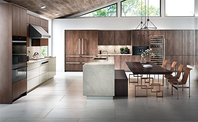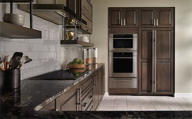 Конструкция с опускающейся дверцей (Drop-Down Door) позволяет встроить печь так, чтобы её фасад выглядел цельным и ровным, без выступающих ручек.