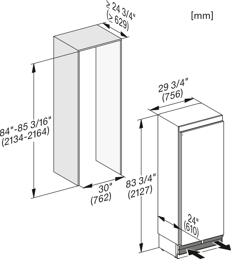 • Габариты ниши (Ш × В × Г):: 762–764 × 2 134–2 164 × 629 мм