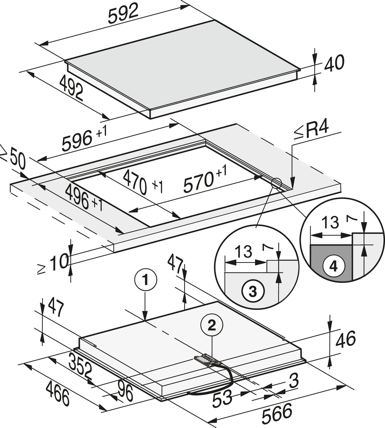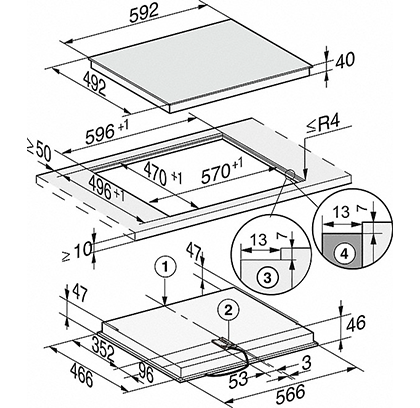 • размеры ниши (Ш × Г): 570/596 × 470/496 мм