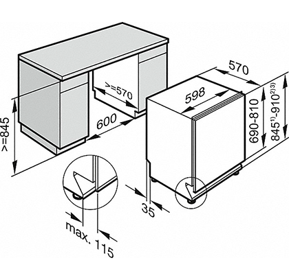 • Габариты ниши (Ш × В × Г):: 598 × 845 × 570 мм