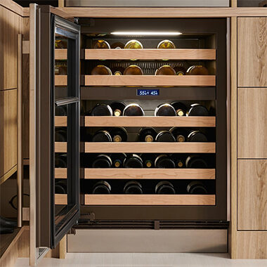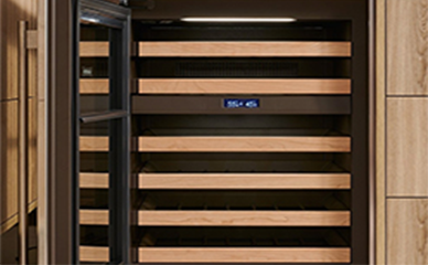 Шкаф оснащён двумя температурными зонами, что позволяет одновременно хранить красные и белые вина при разных режимах.